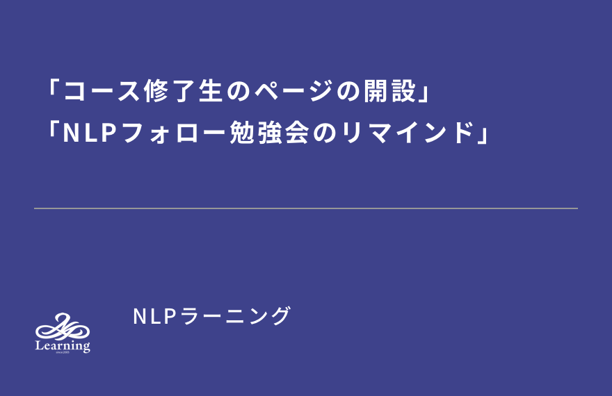 NLPラーニング・NLPプラクティショナー養成コース修了生の皆様へ